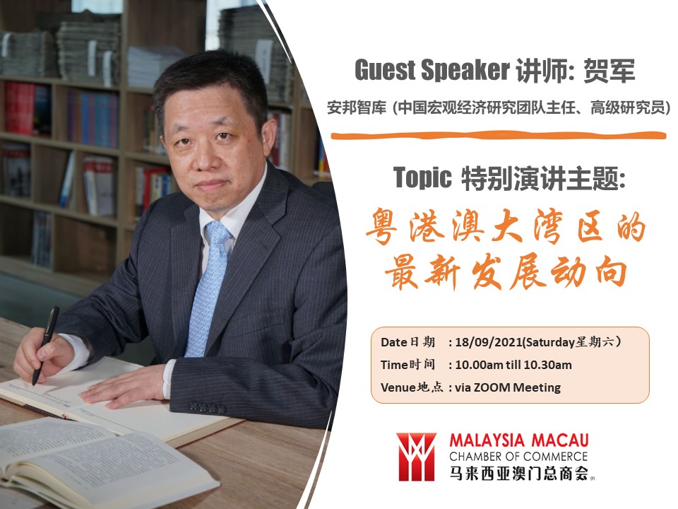 (吉隆坡18日讯)贺军于9月18日(星期六)出席马来西亚澳门总商会线上讲座会时,分享粤港澳大湾区最新的发展与进展。